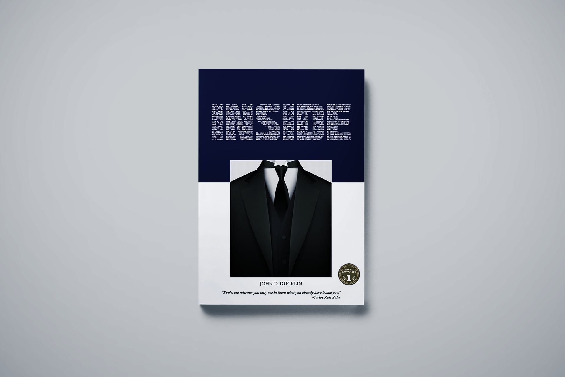 Book cover design that I invented for a fictional client called INSIDE.